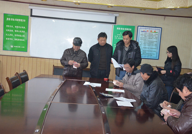 1月16日上午,為響應五建二字(2013)第34號文文件精神,讓農民工過上一個祥和踏實的春節(jié),在公司黨委書記、工會主席朱明友,審計部部長、清欠辦主任曹振波監(jiān)督下,公司博愛安置小區(qū)項目部兌現(xiàn)承諾,向勞務隊砌墻班組發(fā)放了拖欠的工資共51003元(如圖)。