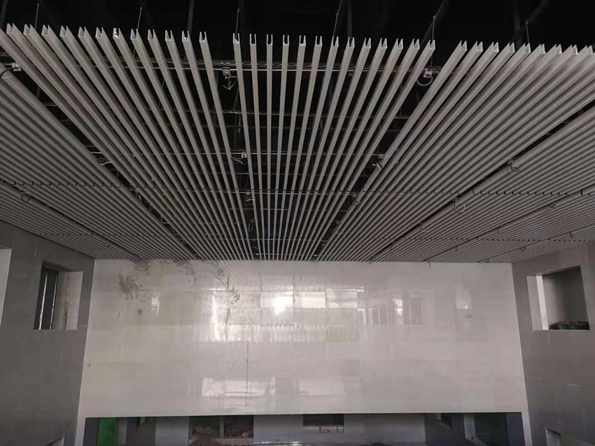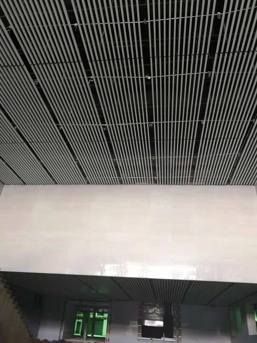 (2)吊頂班組,南北下沉廣場(chǎng)鋁方通吊頂全部安裝完成,南北落客區(qū)鋁板吊頂及包邊完成80%,鋁方通吊頂完成30%。