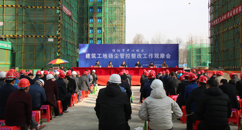信陽市中心城區(qū)建筑工地揚塵管控整改工作觀摩會在我公司泰陽辰項目召開